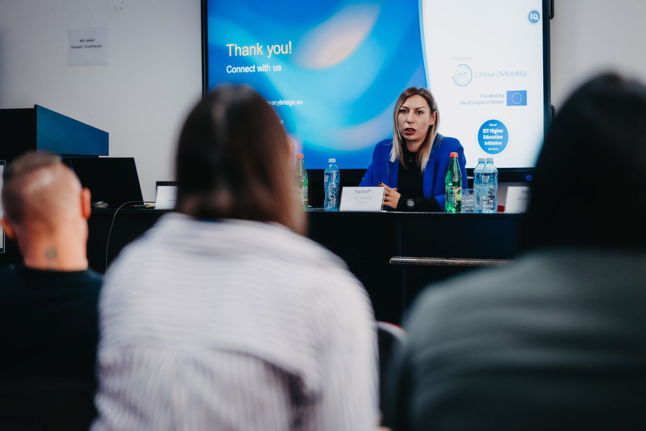 Na samom početku događaja Tamara Krstić, direktorica marketinga Univerziteta Privredna akademija i član projektnog tima, predstavila je prisutnima projekat InnovaCyBridge, kao i predavače koji su ujedno i partneri na projektu.