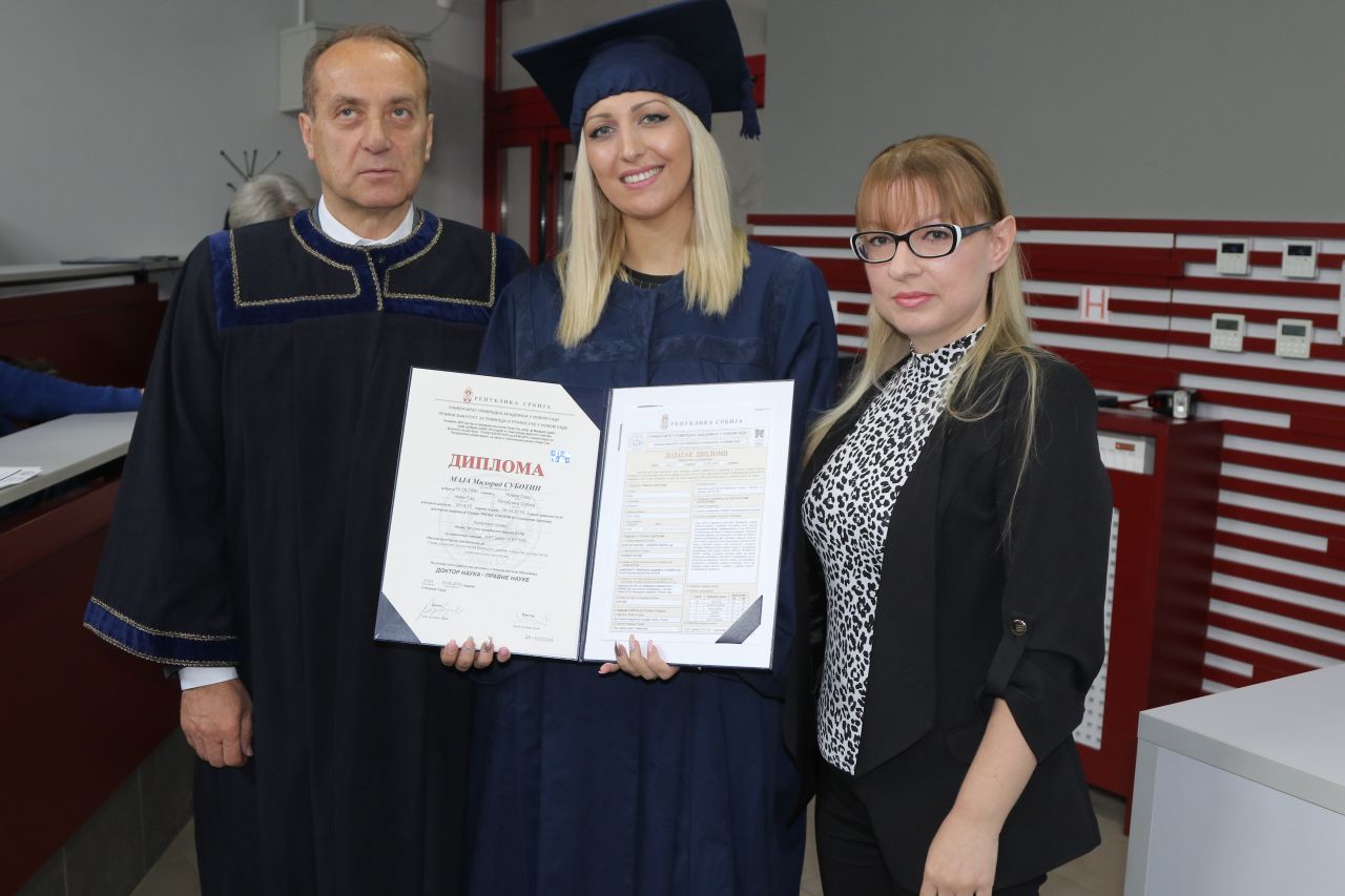 Svi doktorandi koji su odbranili doktorsku disertaciju na Univerzitetu tokom proteklih godinu dana su u amfiteatru Pravnog fakulteta za privredu i pravosuđe Univerziteta Privredna akademija u Novom Sadu svečano promovisani u doktore nauka.