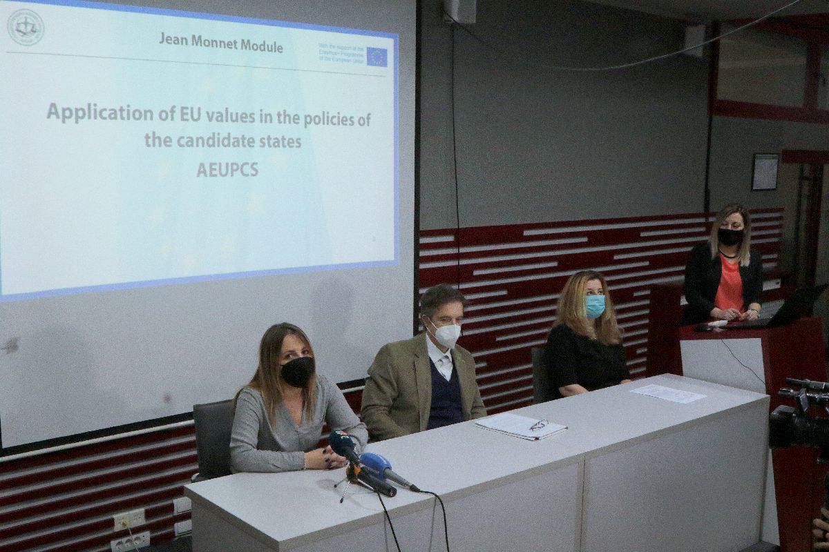 Na Univerzitetu Privredna akademija u Novom Sadu, 09.12.2020. godine održana je konferencija za medije povodom početka realizacije novog Žan Mone modula sa temom „Primena vrednosti Evropske unije u politikama država kandidata“.