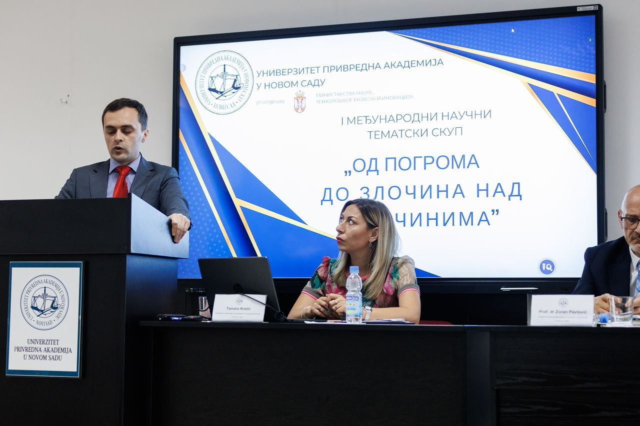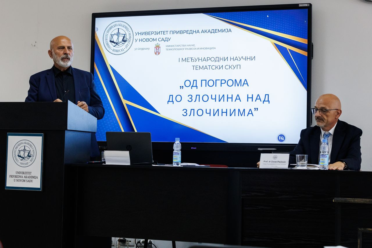 Na Univerzitetu Privredna akademija u Novom Sadu 26. i 27. juna 2024. godine održan je I međunarodni naučni skup pod nazivom „Od pogroma do zločina na zločinima“. Organizator ovog skupa je Univerzitet Privredna akademija u Novom Sadu uz podršku Ministarstva za nauku, tehnološki razvoj i inovacije Republike Srbije.