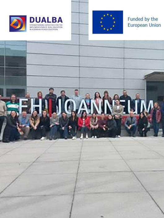 As part of the project “Strengthening Capacities for the Implementation of Dual Education in the Higher Education System of Albania – DUALBA”, a study visit was organized from April 14 to 16, 2025, by FH Joanneum University of Applied Sciences in Graz.