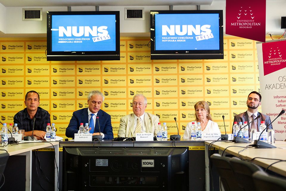 Wishing to improve the quality of studying in Serbia, on Thursday, 07 July 2016, at the Media Center in Belgrade, representatives from five private universities in Serbia, namely: University Business Academy in Novi Sad, Metropolitan University, Educons University, Alfa BK University and the University of Novi Pazar presented, signed and publicized their joint Declaration on the improvement of the quality of higher education in Serbia.