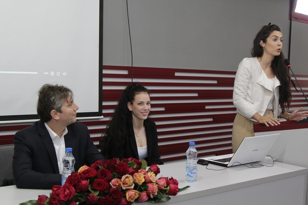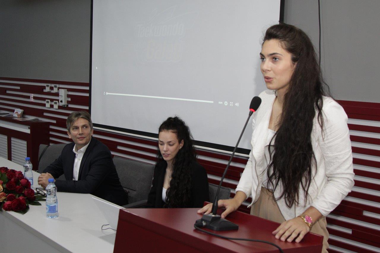 Milica Mandić and Tijana Bogdanović, who won gold and silver medals at the 2012 Olympics in London and the Olympic Games in Rio de Janeiro in 2016, spoke of their development in sport and experiences along the way. Milica Mandić started her career in 2008 when she did not even expect to become a professional taekwondo player, but because of her talent and hard work- she started achieving excellent results. The audience sees only those six minutes of the fight, and behind that there is a lot of hard work and dedication- just as you need in order to successfully complete your studies, says Milica Mandić. Milica points out that she never wanted to be an average athlete, so she had to continuously work hard to achieve the above-average results. Teamwork and mutual support in the Taekwondo Club “Galeb” were evident even when competitors did not have great results, but that is essential for an athlete to overcome the bad periods which are inevitable during one’s career, continues Milica Mandić. Tijana Bogdanović talked about their preparations for the Olympic Games and noted that her qualifications in our country were equally challenging for her as were the fights themselves later on, for they all led to major fights and silver medal at the Olympics. The two athletes spoke about the importance of focus during the competition when nothing should distract you during those 6 minutes, if you wish to succeed.