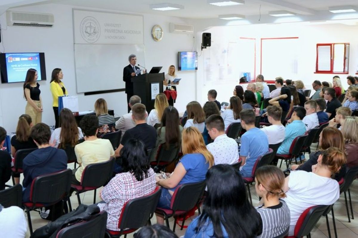 Prof. Marijana Carić Ph.D., President of the Council of the University Business Academy in Novi Sad, opened the final stage of the competition and the award-giving ceremony. The Faculty of Economics and Engineering Management, as part of the University Business Academy in Novi Sad, hosted the whole event this year. On that occasion, prof. Marijana Carić emphasized the importance of this and other similar competitions. "Such initiatives should be encouraged and supported, because these are the most beautiful actions when young people compete and when they get the chance to pinpoint the main problems of today's society using such a creative approach" - said Dr. Marijana Carić. Ass. Prof. Radovan Vladisavljević Ph.D., as the Vice-Dean for Teaching, addressed the winners and their mentors on behalf of the Faculty of Economics and Engineering Management in Novi Sad. Ass. Prof. Predrag Mirković, as the Vice-Dean for Teaching at the Faculty of Law in Novi Sad addressed the audience on behalf of the Faculty he represents.