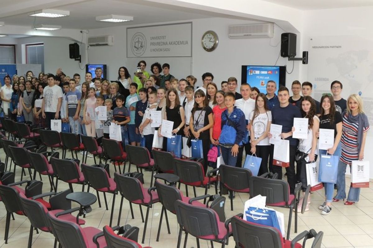 There were 58 films from elementary and high schools that were reviewed and evaluated by an expert jury. The best 13 works i.e. short films (by primary and secondary school students), as well as their mentors, were awarded by FIMEK - Faculty of Economics and Engineering Management in Novi Sad, as well as the Faculty of Law in Novi Sad. Our two faculties were sponsors and co-organizers of the competition. Ms. Jasmina Pastonjicki, chairman of the jury, spoke about the difficult task that the jury had in the process of selection of the best short films.