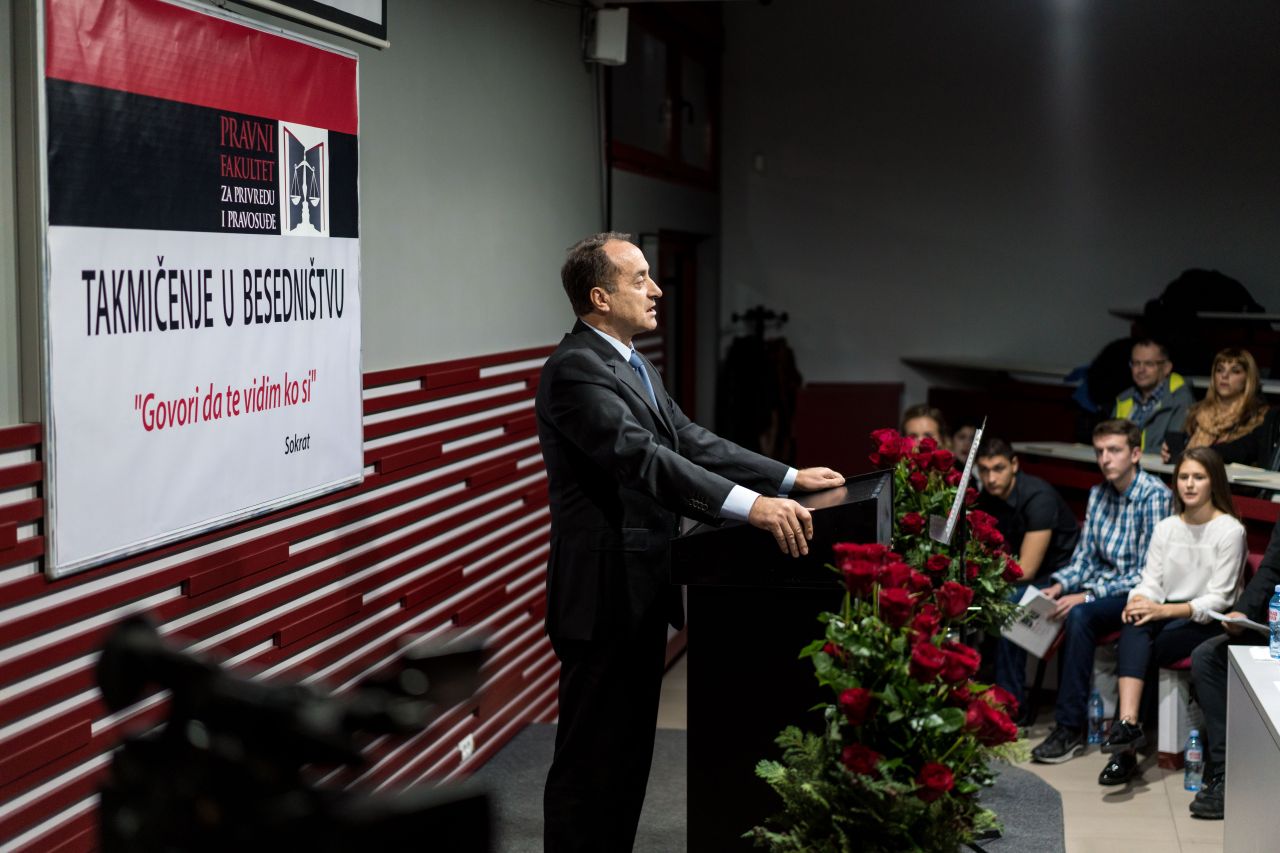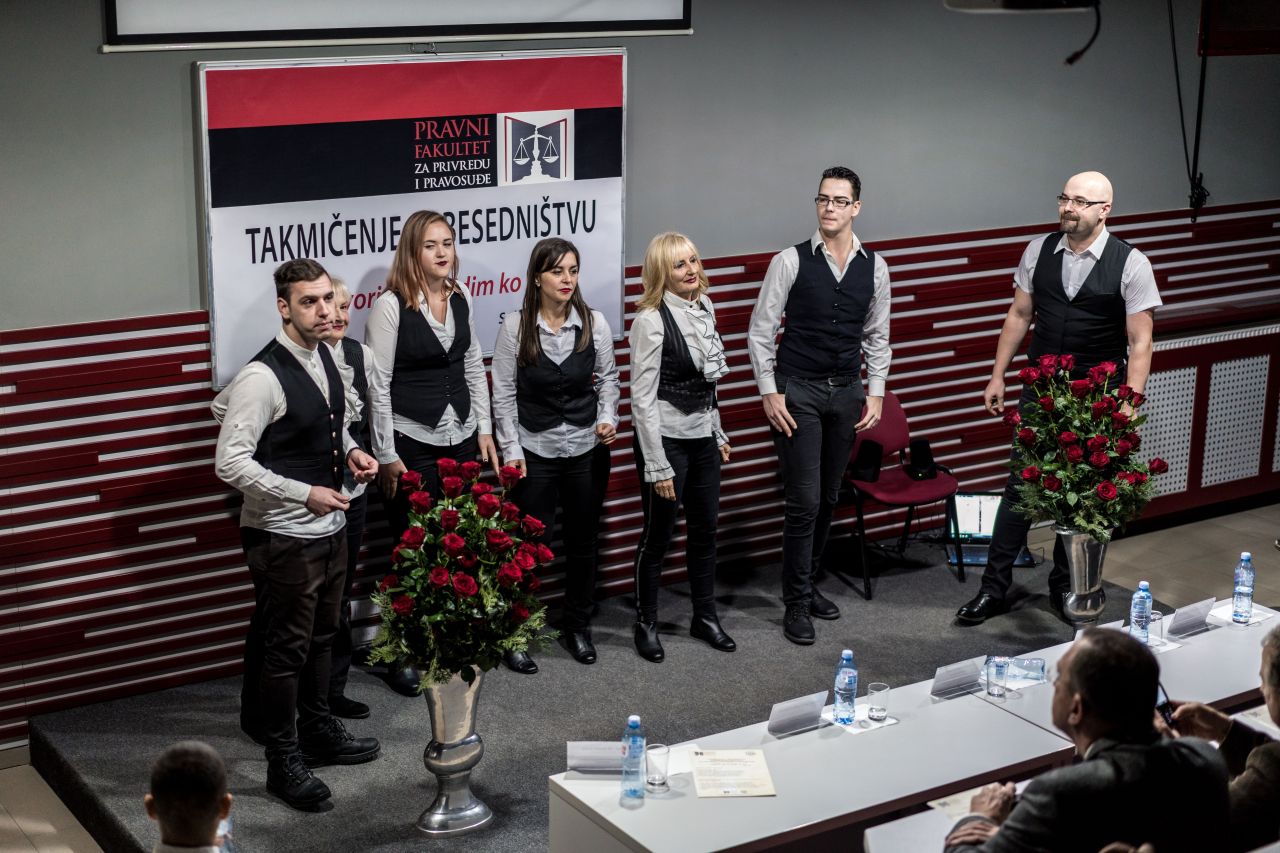 The jury consisted of five members: Prof. Marko Carić Ph.D., Dean of the Faculty of Law in Novi Sad and President of the Jury, Prof. Mirko Kulić Ph.D., Rector of the University Business Academy in Novi Sad, Ms. Gordana Đurđević Dimić, one of the leading actresses of the Serbian National Theater, Prof. Biljana Đurović Ph.D., an Associate Professor at the Faculty of Contemporary Arts in Belgrade and Prof. Milorad Bejatović Ph.D., a Full Professor at the Faculty of Law in Novi Sad. After the contestants presented their speeches, the Jury decided that of all high school graduates the prize should go to Aleksandar Malešević from the "Laza Kostić" Gymnasium. On the other hand, the title of the best public speaker with the best oratory skills among the competing university students was awarded to the final-year student of the Faculty of Law in Novi Sad - Marko Vujaković. The winner in the high school graduates category won a trip to Milan for two people, while the winner in the category of university students won a 30% discount on the tuition fee for the current year at the Faculty of Law in Novi Sad.