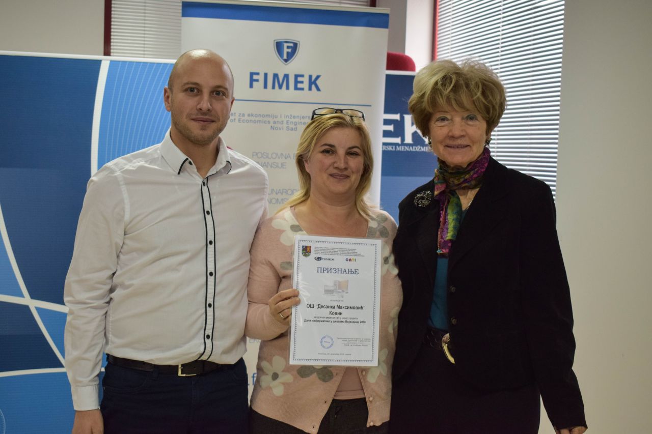 The final ceremony of the event called "Days of Informatics in the Schools of Vojvodina 2018” was held on 20 December, 2018 at the Faculty of Economics and Engineering Management in Novi Sad. On that occasion the prestigious award "Professor Stjepan Han" was awarded to the elementary school "Sremski front" from Šid, as the most successful school in the promotion and application of information technology.