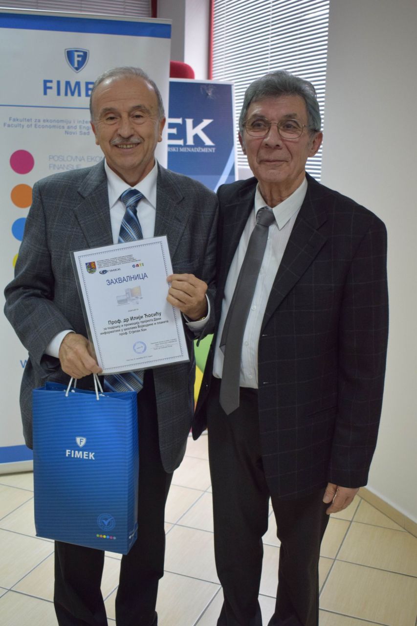 Prof. Ilija Ćosić, Ph.D. was awarded a special certificate for the support and promotion of the project "Days of Informatics in the Schools of Vojvodina" and the honorary award “Stjepan Han“. In the continuation of the manifestation, prof. Ćosić talked more about the biography and professional work of Stjepan Han.